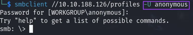 Then We use smbclient to try to connect an anon user which is the most common misconfuguration :
